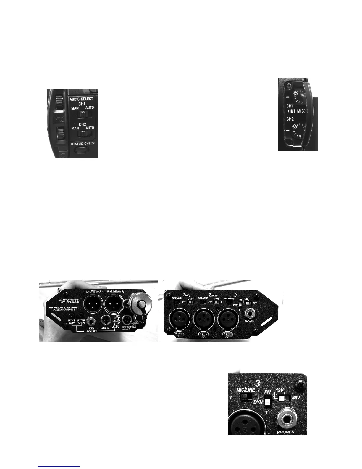 Plug each mic into one of the three XLR inputs, making sure the switches