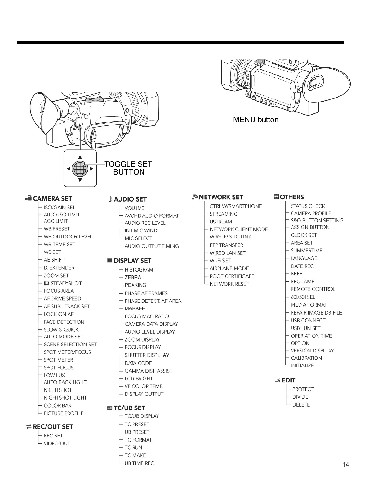 Sony Z90 - Navigating the Menu & Making Changes; Camera Set; Audio Set; Display Set