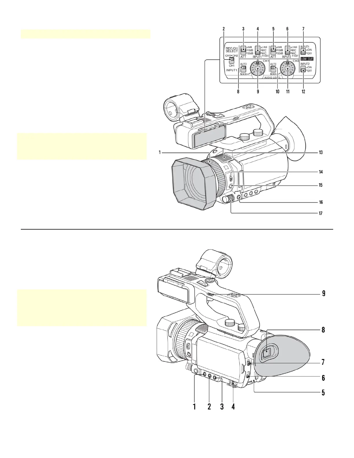 Sony Z90 - Manual Adjustment Controls; Audio Input Controls; Camera Body Controls; Handle Controls