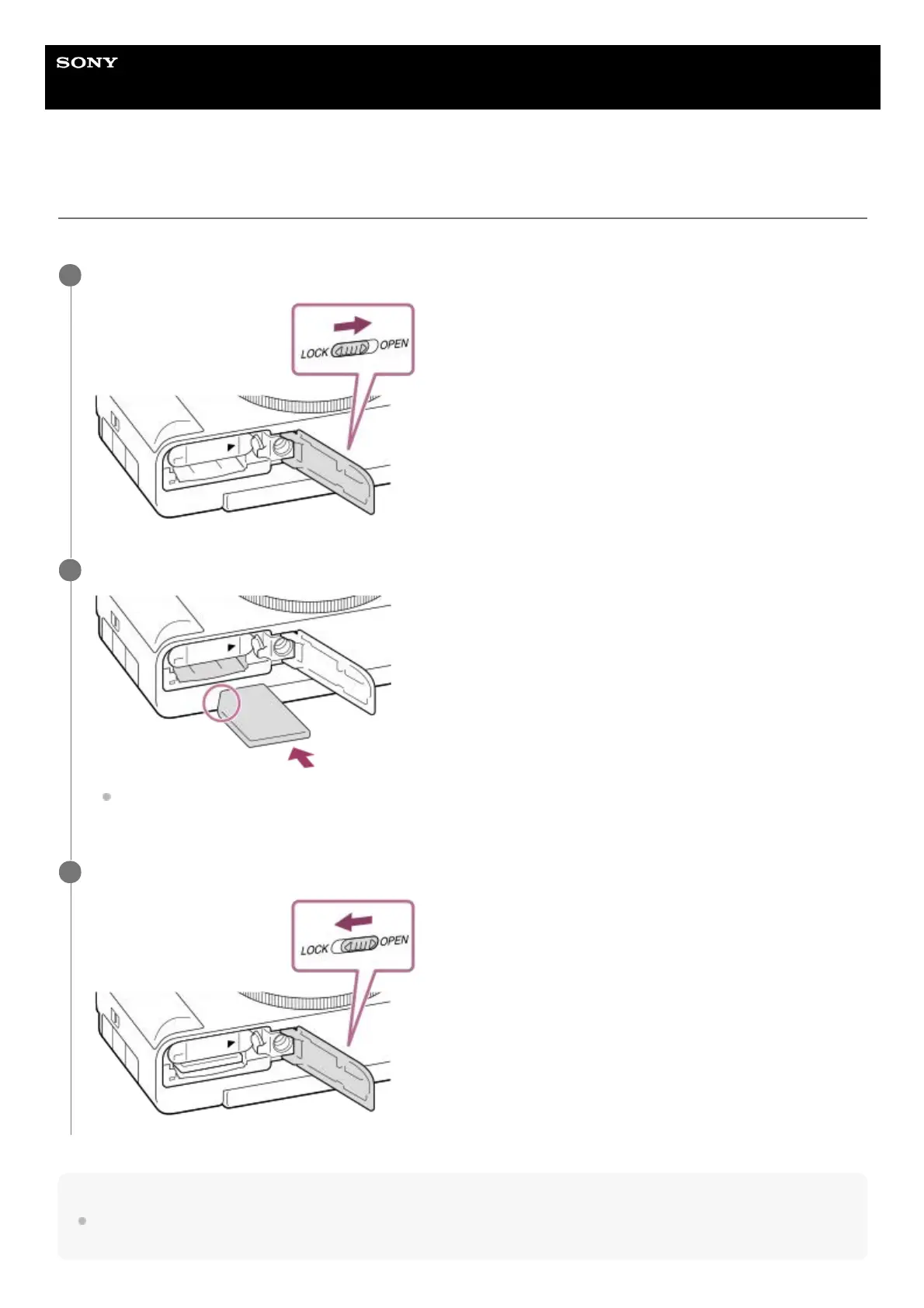 With the notched corner facing in the direction illustrated, insert the memory card until it clicks into place. Insert