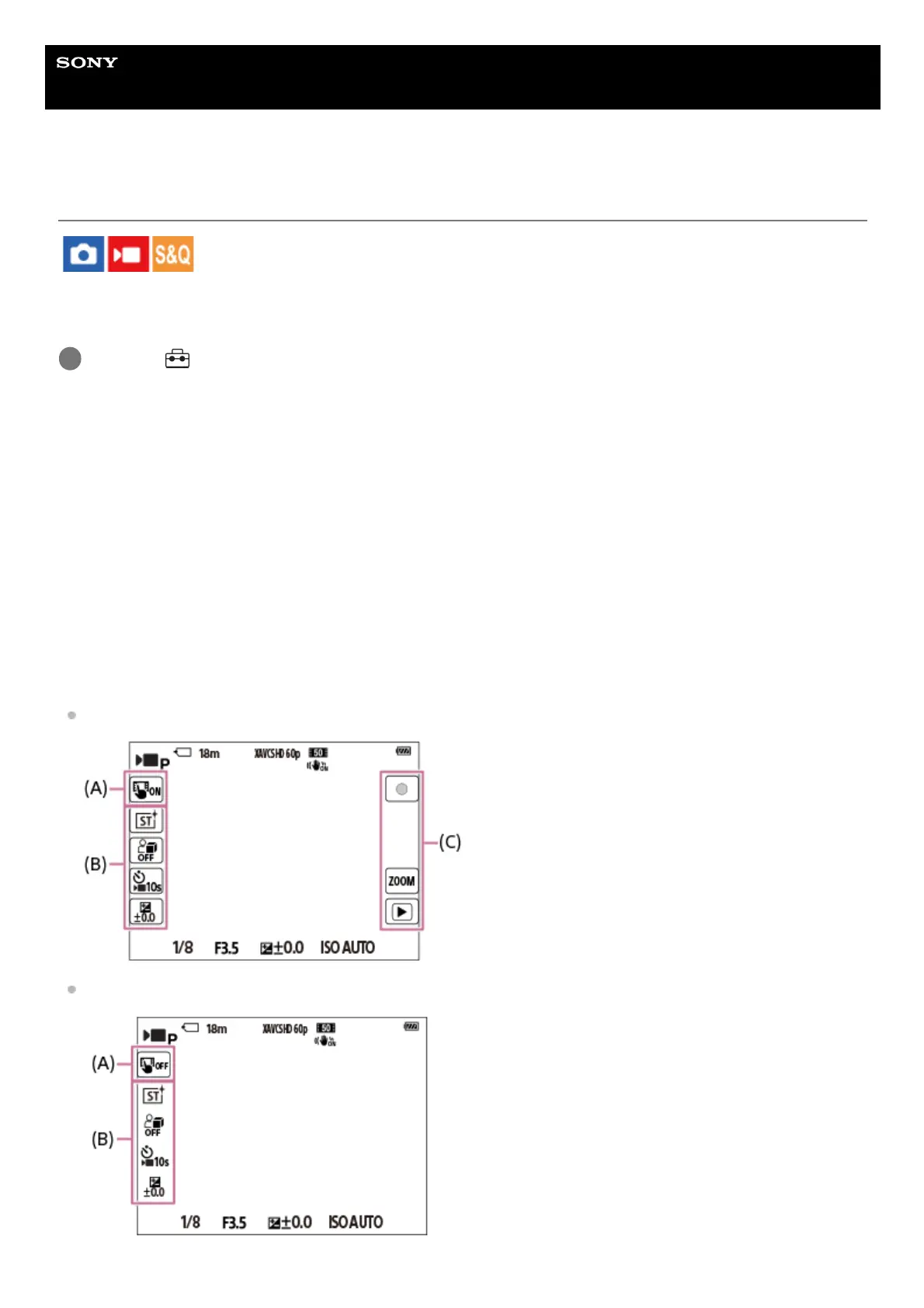 When [Icon Touch Function] is set to [On], the icon touch button (A) is displayed. You can temporarily switch the icon