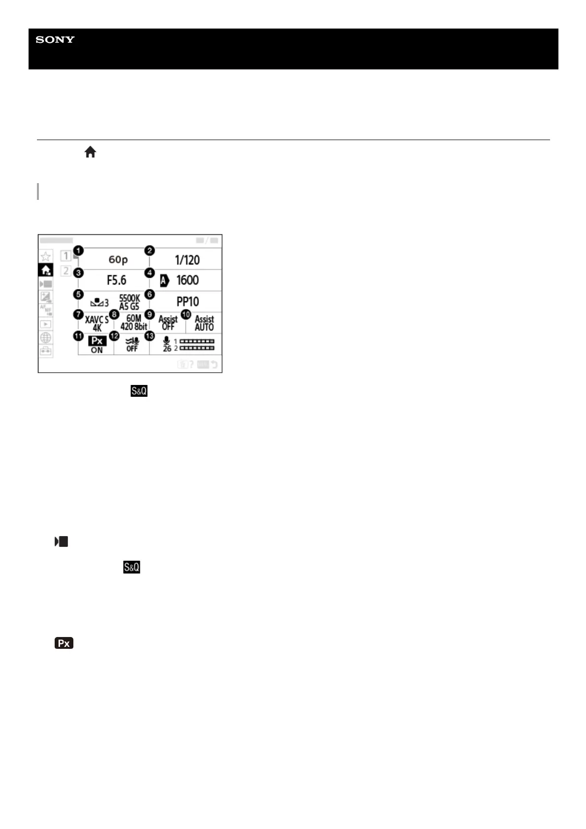 S&Q Settings (when shooting slow-motion/quick-motion movies)1.