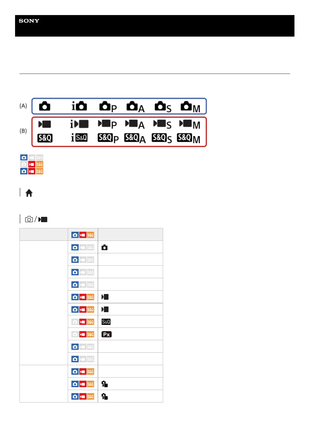 : The menu item is displayed when the shooting mode is set to either the still image shooting modes (A) or the