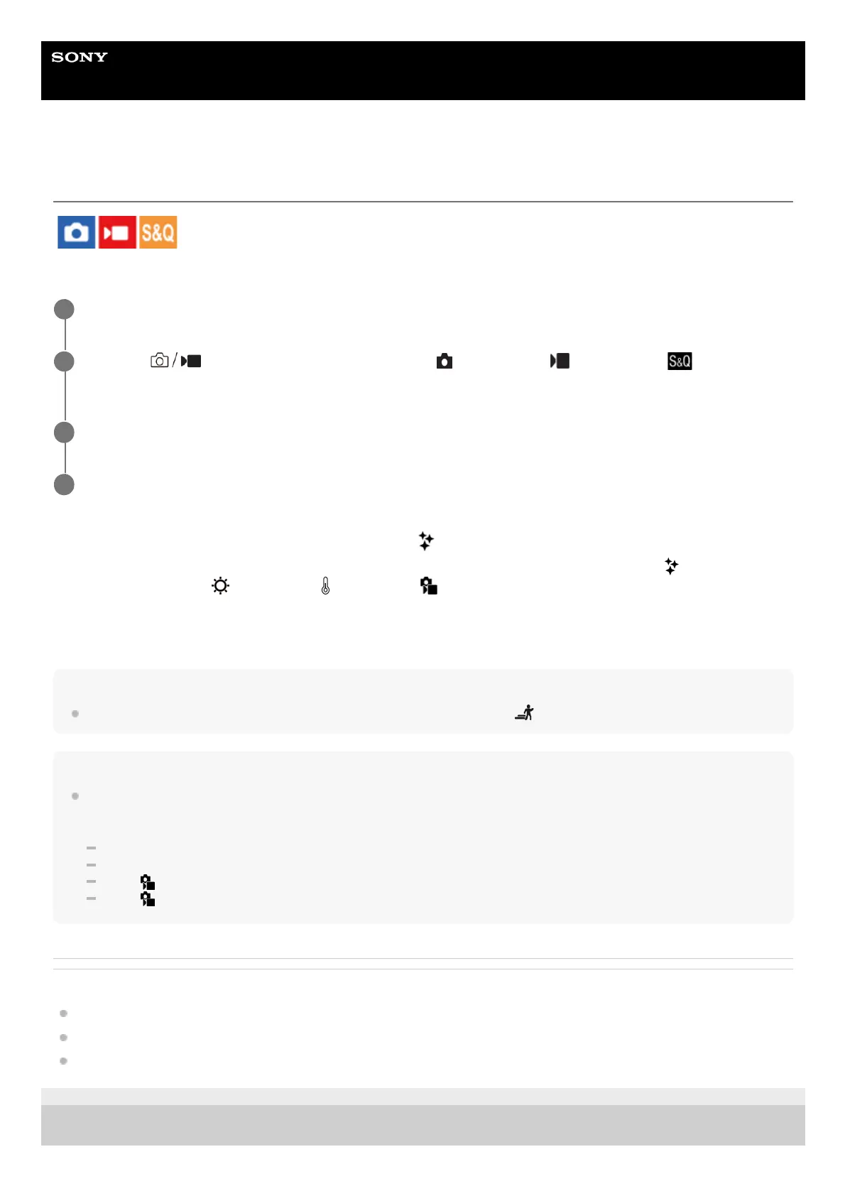 Press the Still/Movie/S&Q button to select the desired shooting mode.