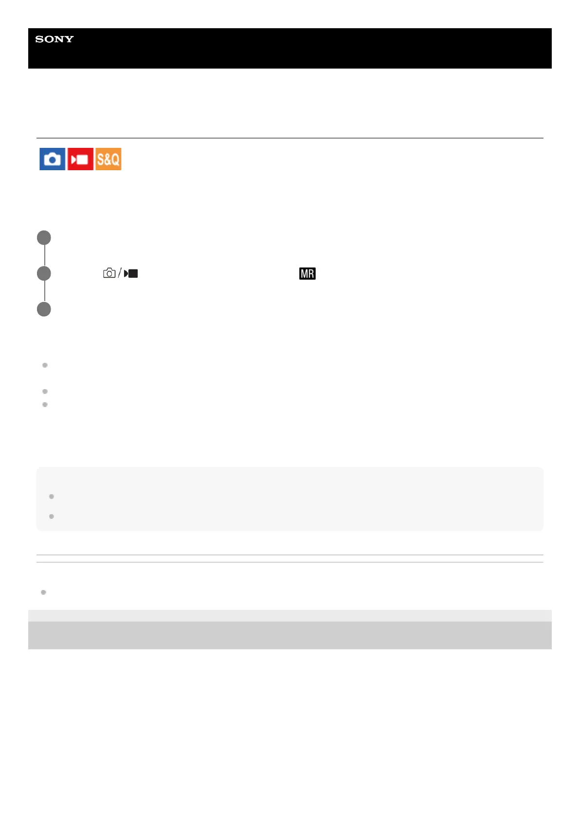 Allows you to register up to 3 often-used modes or product settings per shooting mode (Still/Movie/S&Q Motion/time-