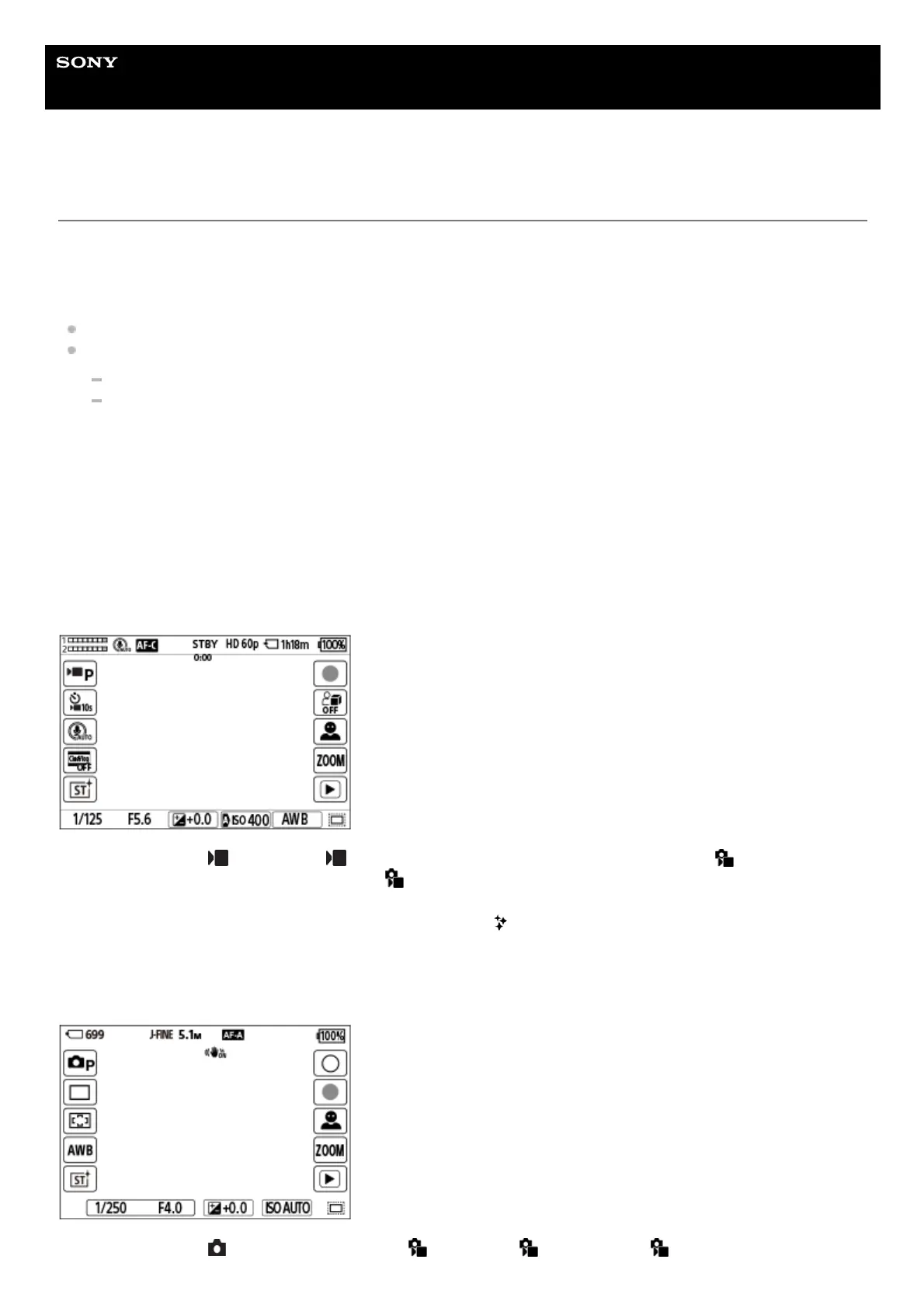 Some functions have icons for touch operations (touch function icons). You can execute or change the settings of the