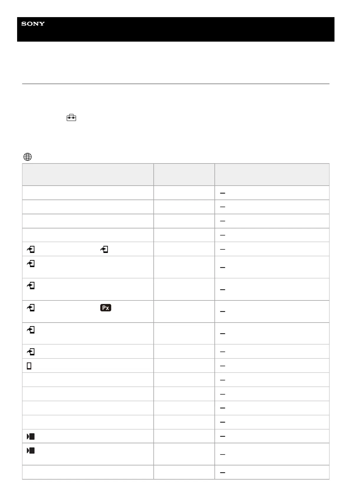 Camera Settings Reset: Items that can be reset are limited. See the following table.
