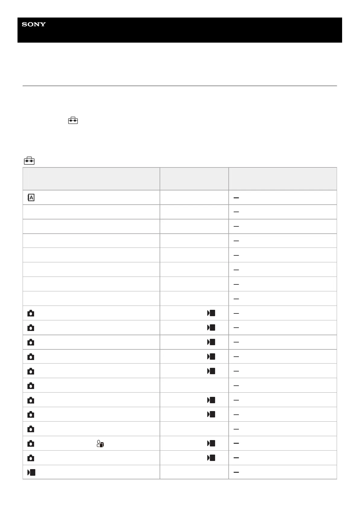 Camera Settings Reset: Items that can be reset are limited. See the following table.