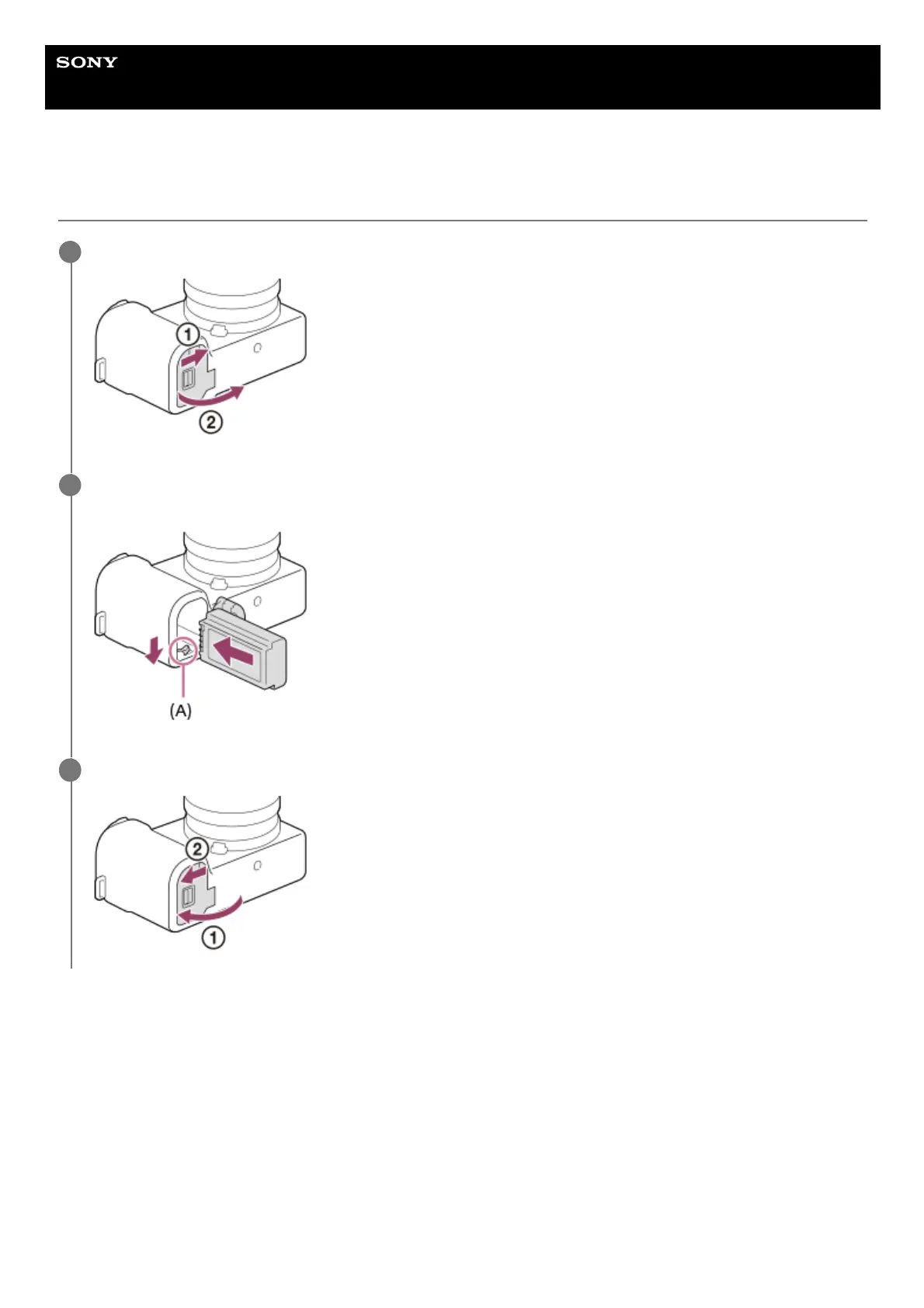 Make sure that the access lamp is not lit, and turn off the camera. Then, slide the lock lever (A) and remove the battery