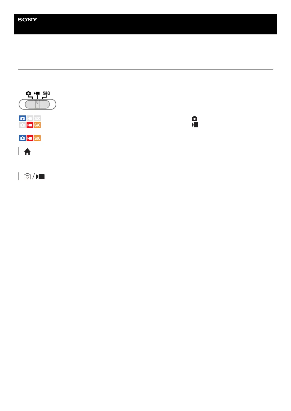 in which each MENU item is displayed are indicated by the still image/movie/S&Q icons.