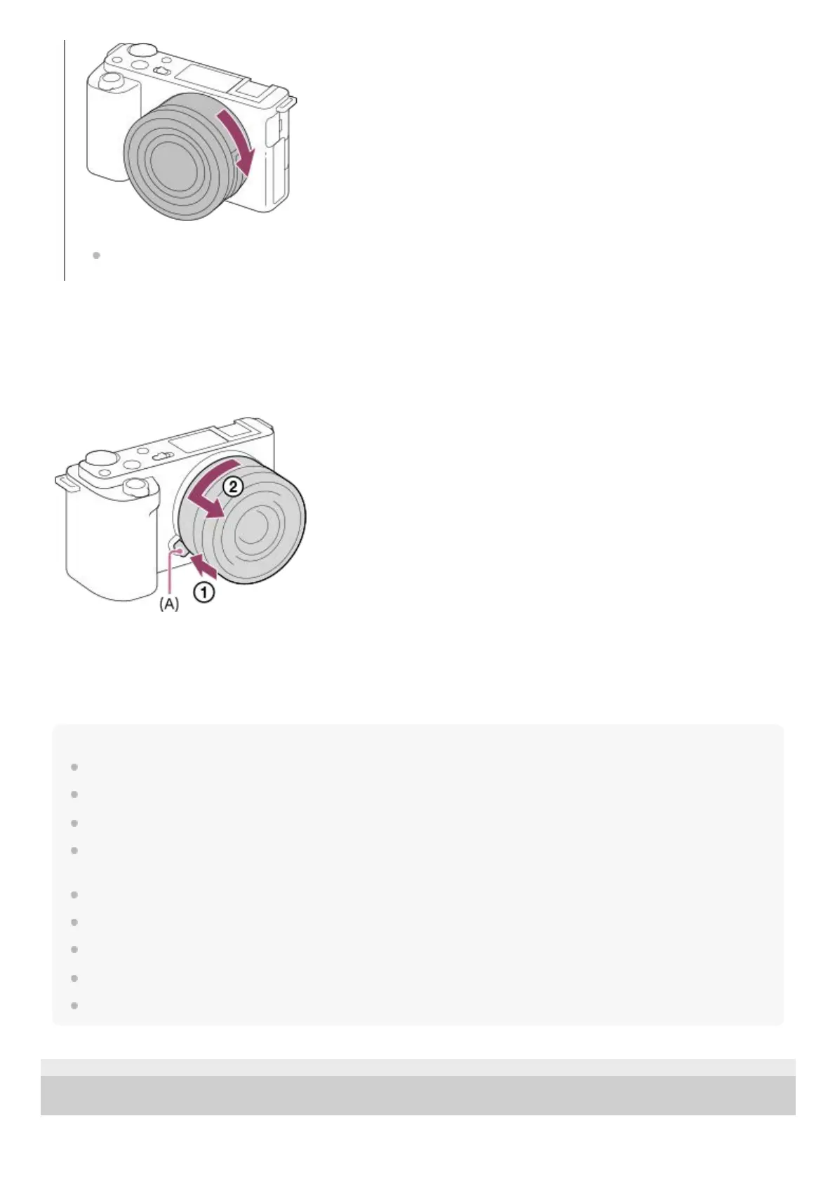 Keep pressing the lens release button (A) and turn the lens in the direction of the arrow until it stops.