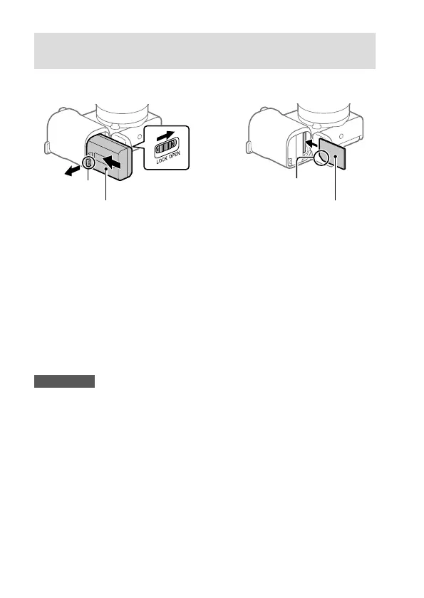 Avaa akun/muistikortin kansi ja aseta akku ja muistikortti kameraan. Sulje