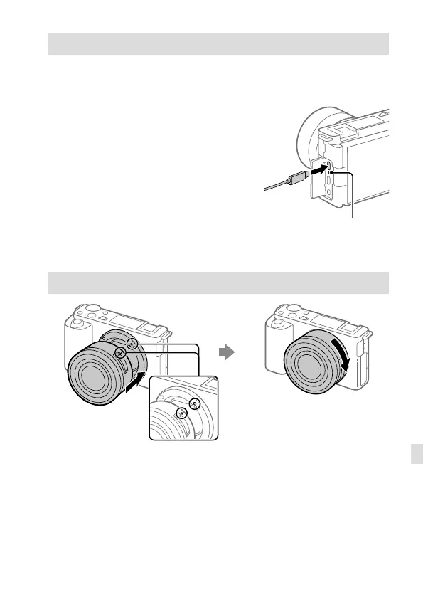 3 Håll objektivet lätt tryckt mot kameran och vrid det långsamt i pilens