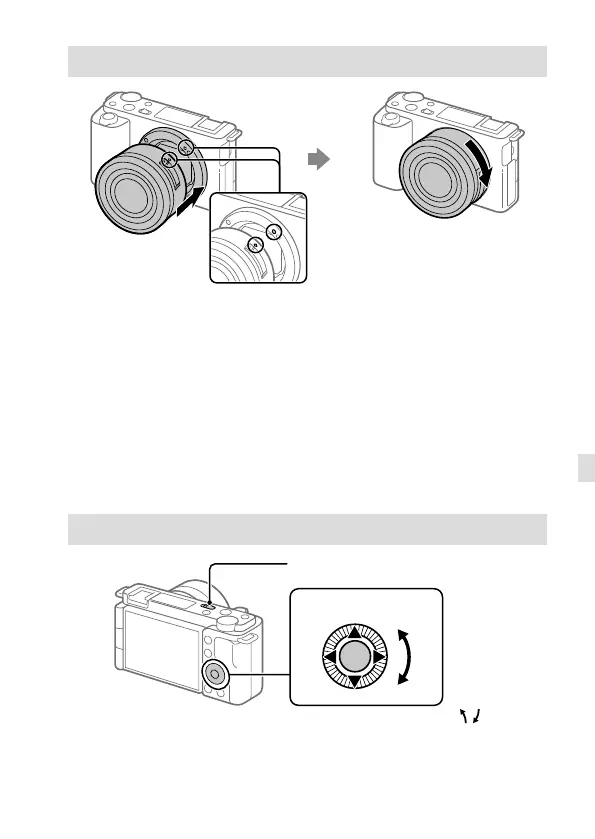 3 Enquanto empurra a objetiva ligeiramente em direção da câmara, rode