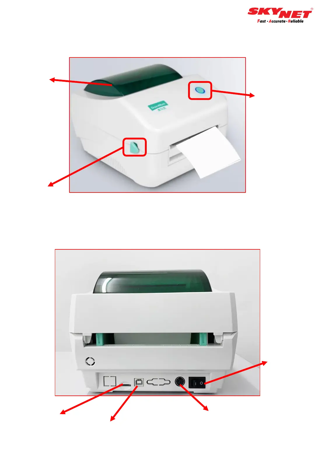 SoonMark M8 - Printer Parts Overview; Front Surface Identification; Back Surface Ports and Controls