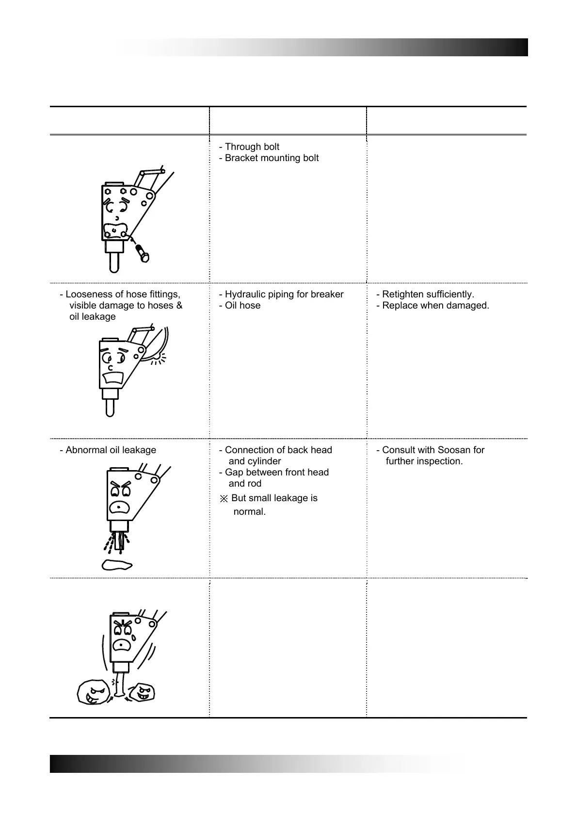 Be fore starting operation, be sure to inspect the breaker referring to the following table.