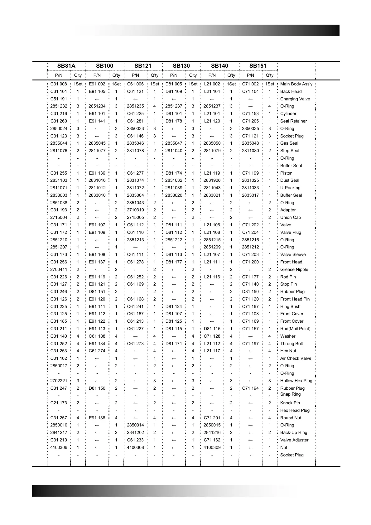 P/N Q'ty P/N Q'ty P/N Q'ty P/N Q'ty P/N Q'ty P/N Q'ty