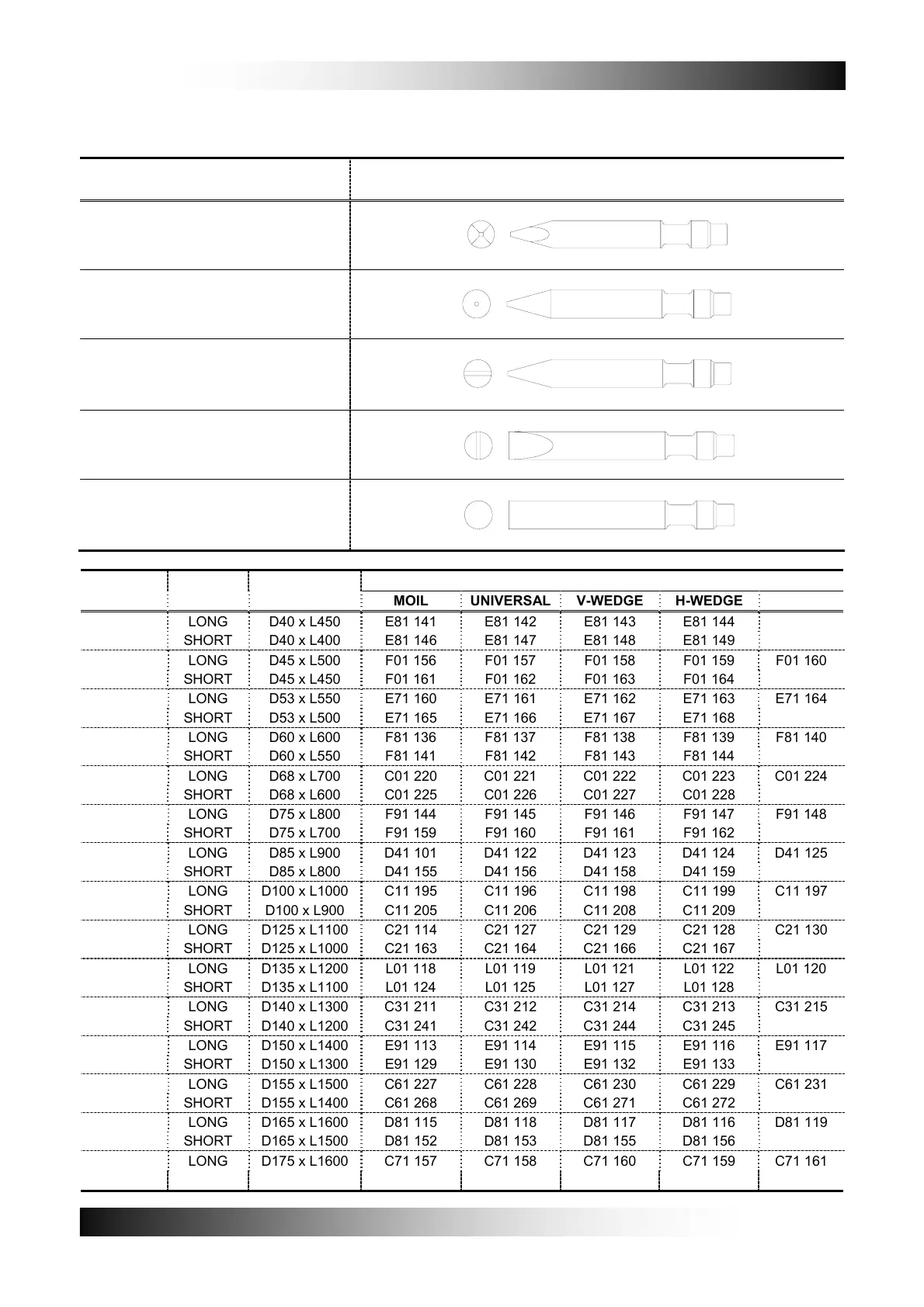 SHORT D175 x L1500 C71 189 C71 190 C71 192 C71 193 C71 191