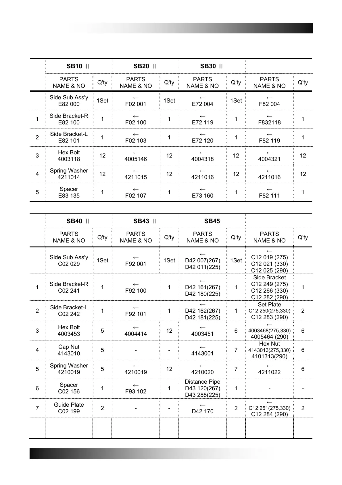 SB40 SB43 SB45 SB50