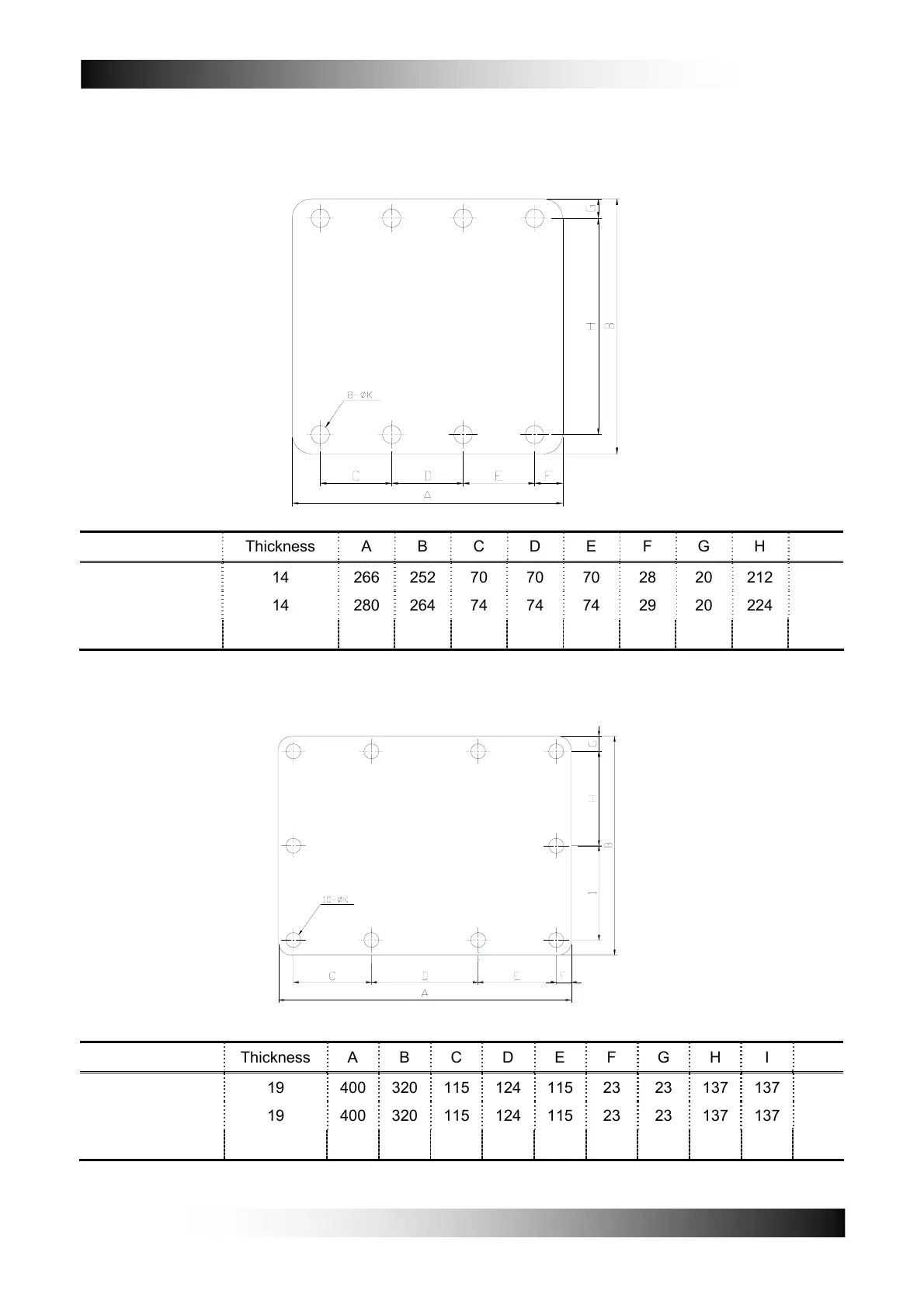Model Thickness A B C D E F G H I K
