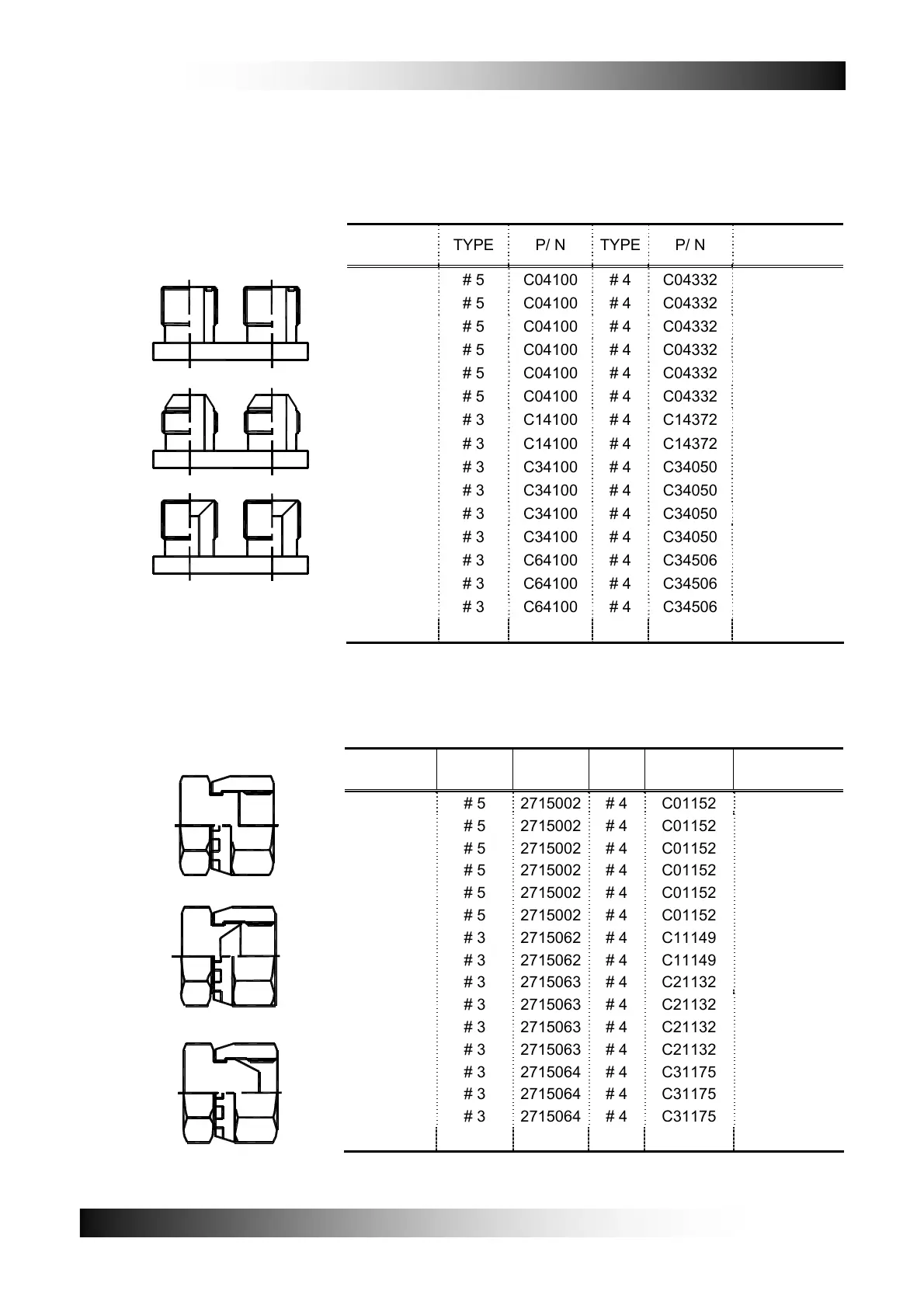 MODEL TYPE P/ N TYPE P/ N O-RING(#3)