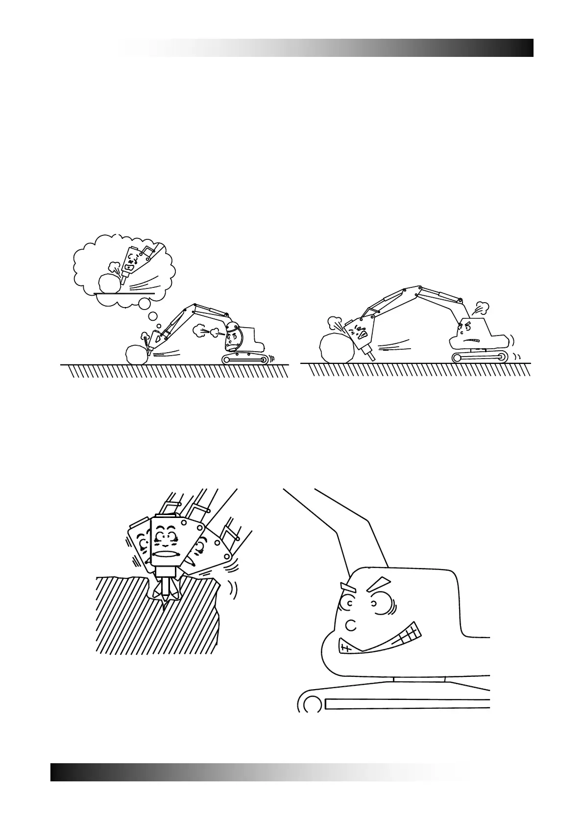 and damage to the arm and boom. Do not move rock. It is strictly prohibited to travel when the breaker is