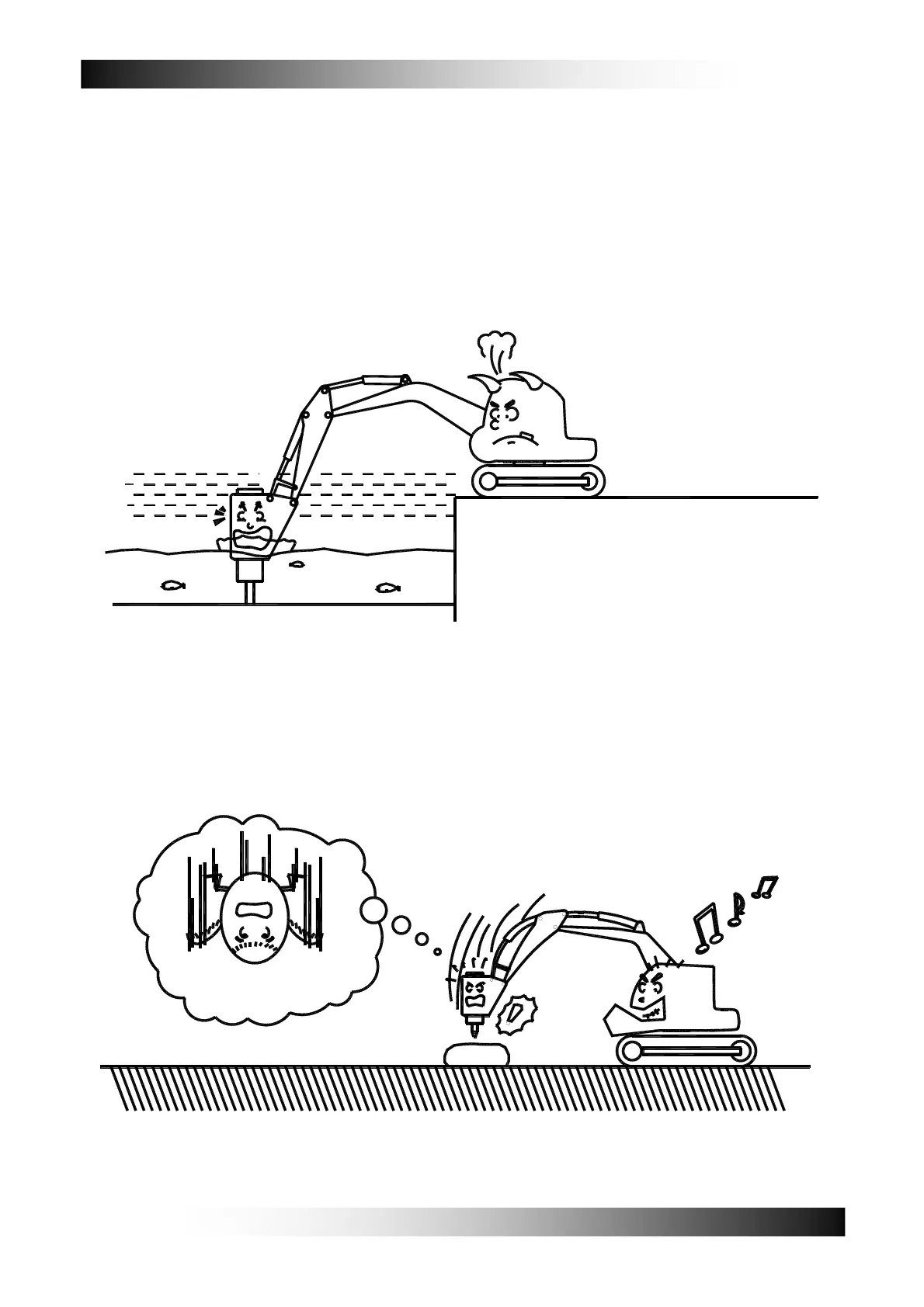 [7] Do not operate breaker when all components except rod are immersed in water and mud.