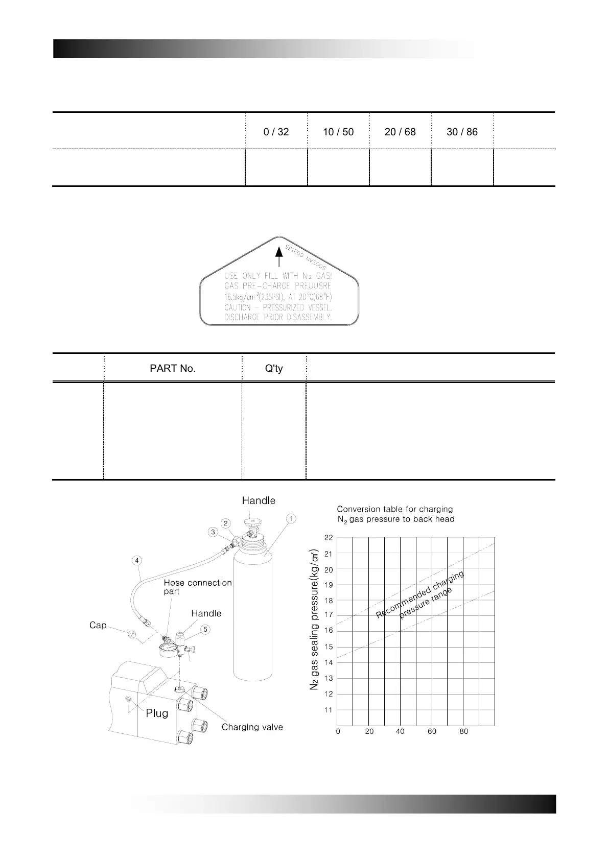 ■ Conversion Table for charging nitrogen gas pressure to Back Head
