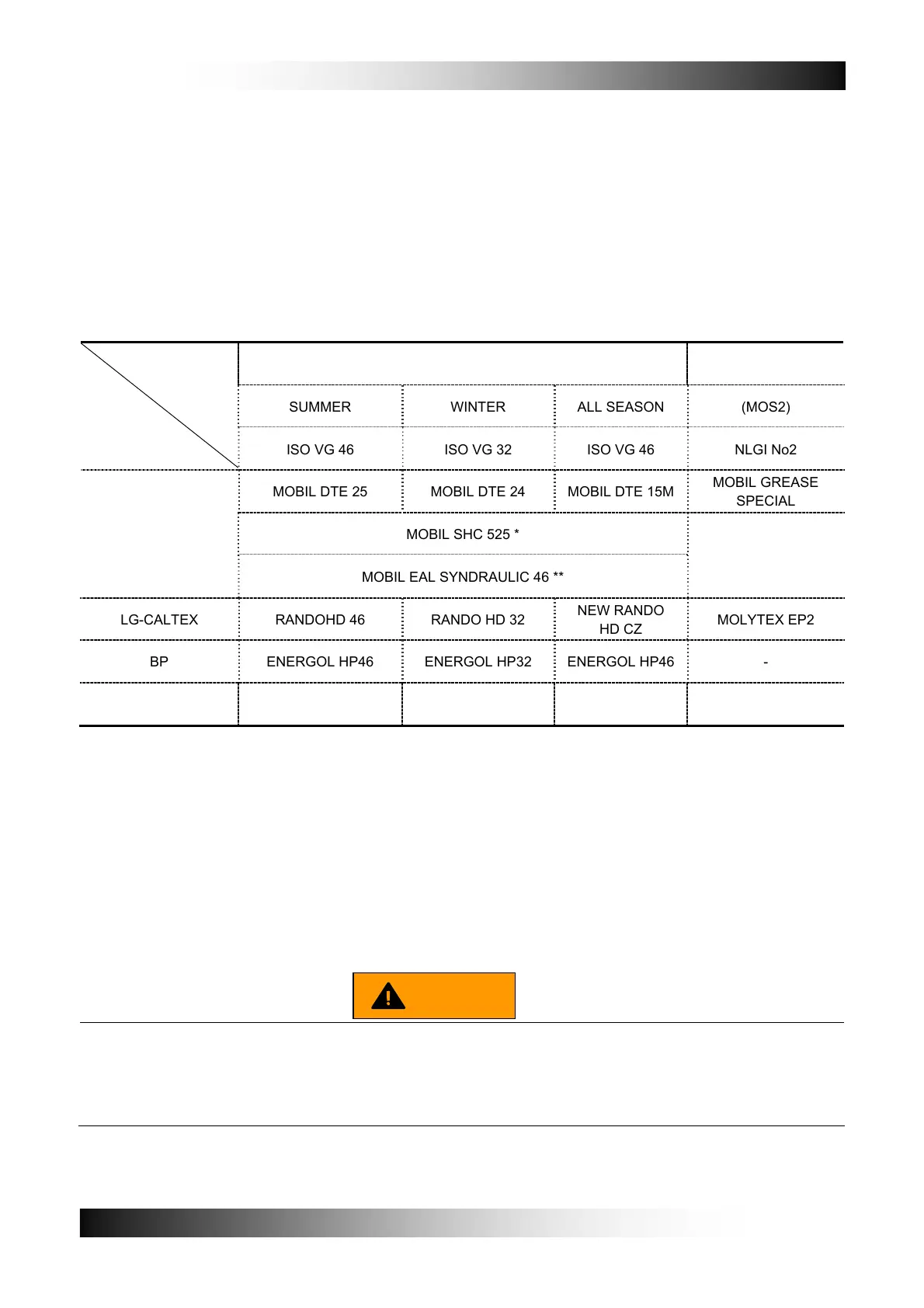 ■ Hydraulic Oil and Grease