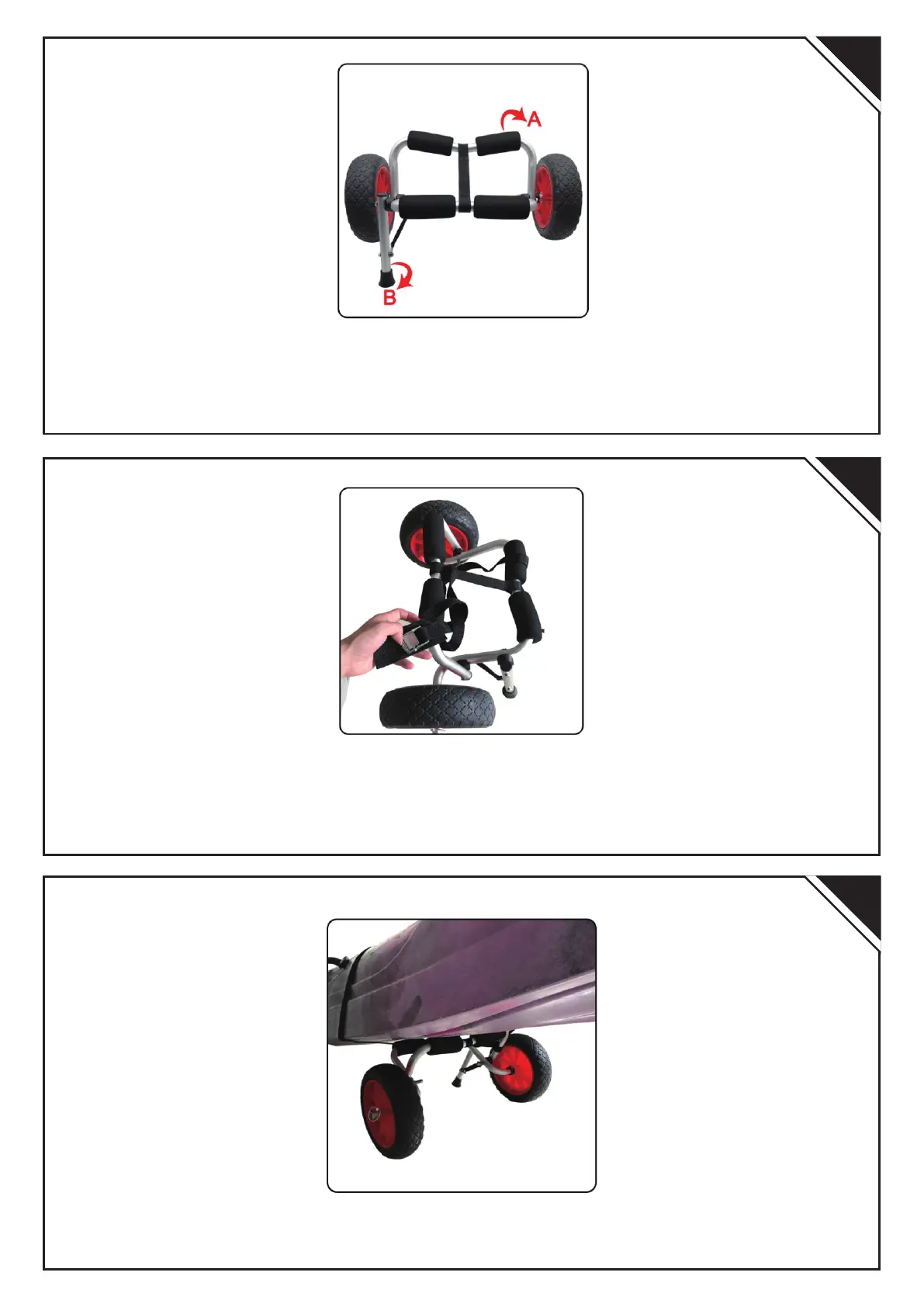 FR: Veuillez préparer le chariot pur le kayak, ouvrez le cadre (A) et déployez la