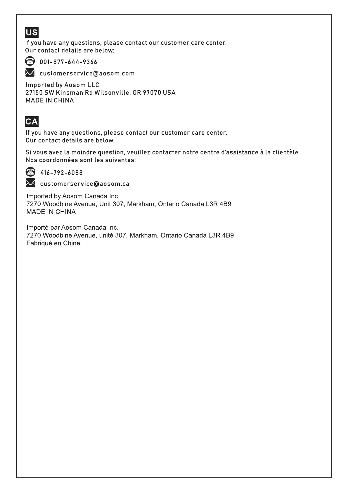 Soozier A90-290 - Customer Support Information