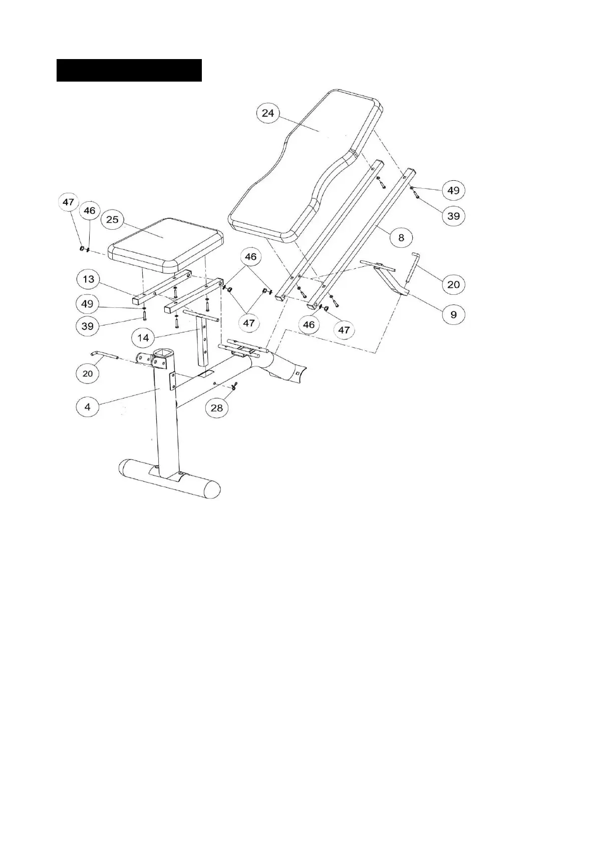 (39) and washers(49).After finished , put the adjusting bracket for backrest (9) onto the base tube of