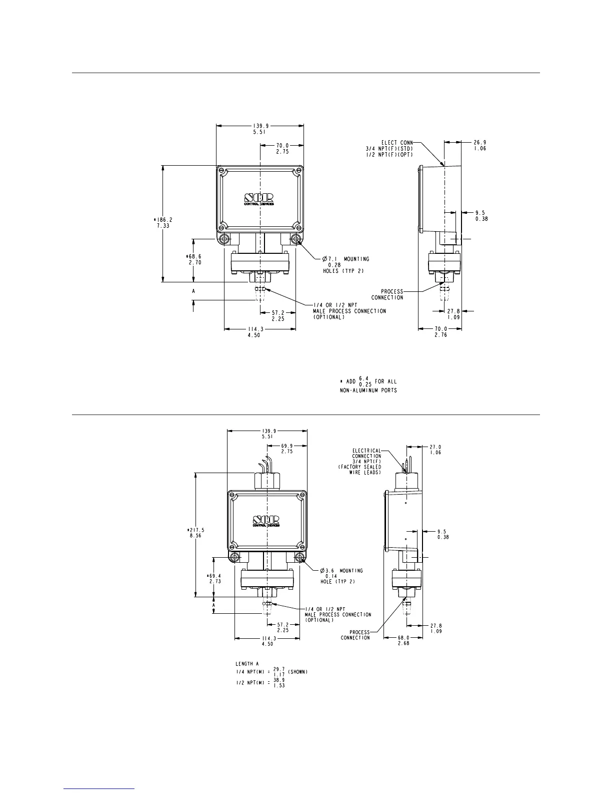 factory for certified drawings for a particular model number. Dimensions are expressed as millimeters