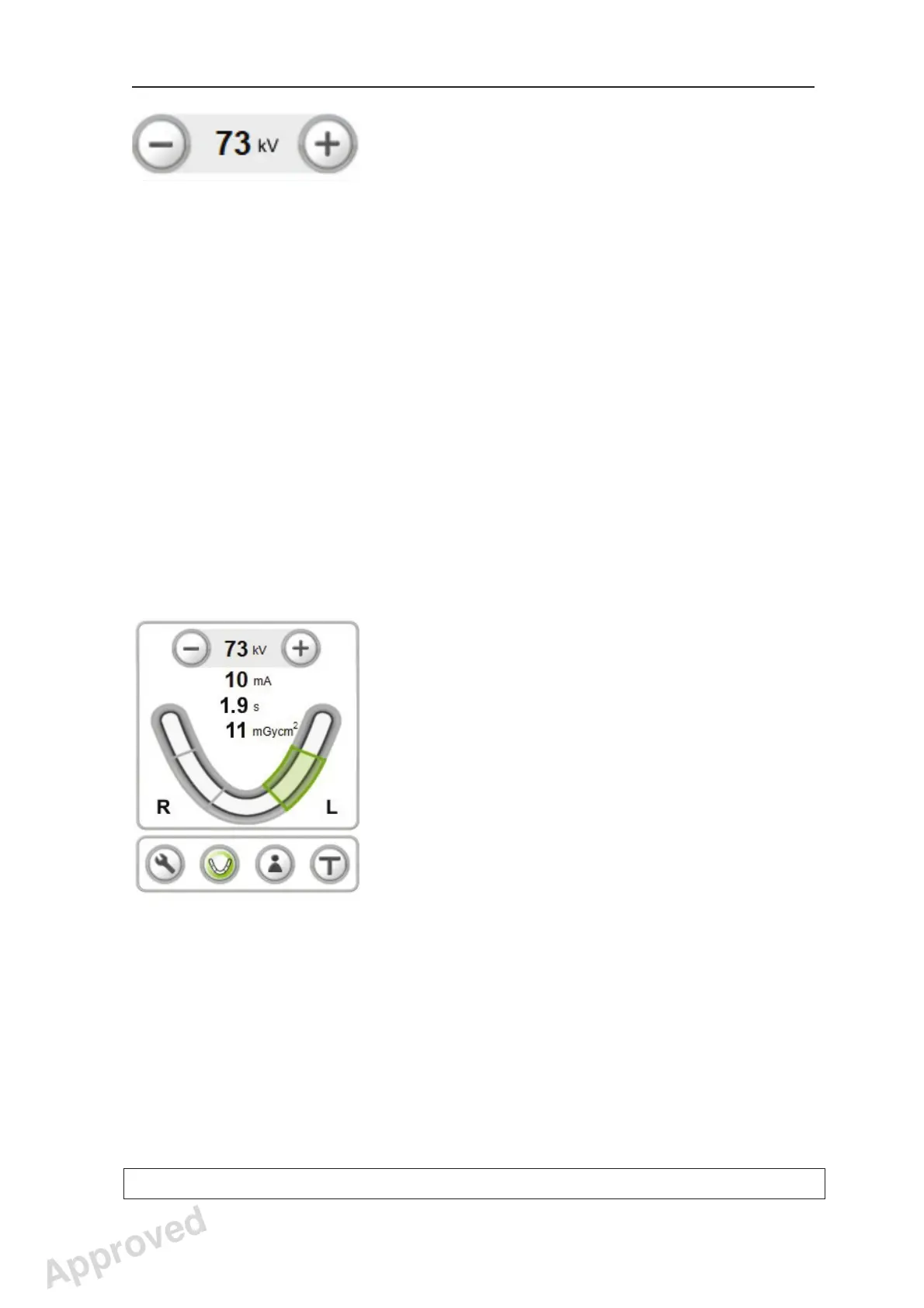 5. A default kV value for the selected panoramic
