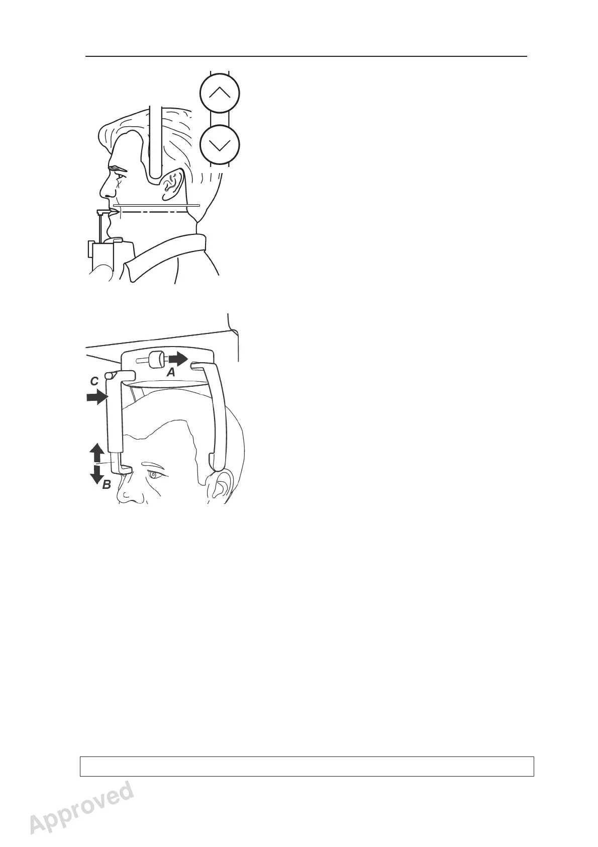 is level with the patient’s forehead or nasion (B).