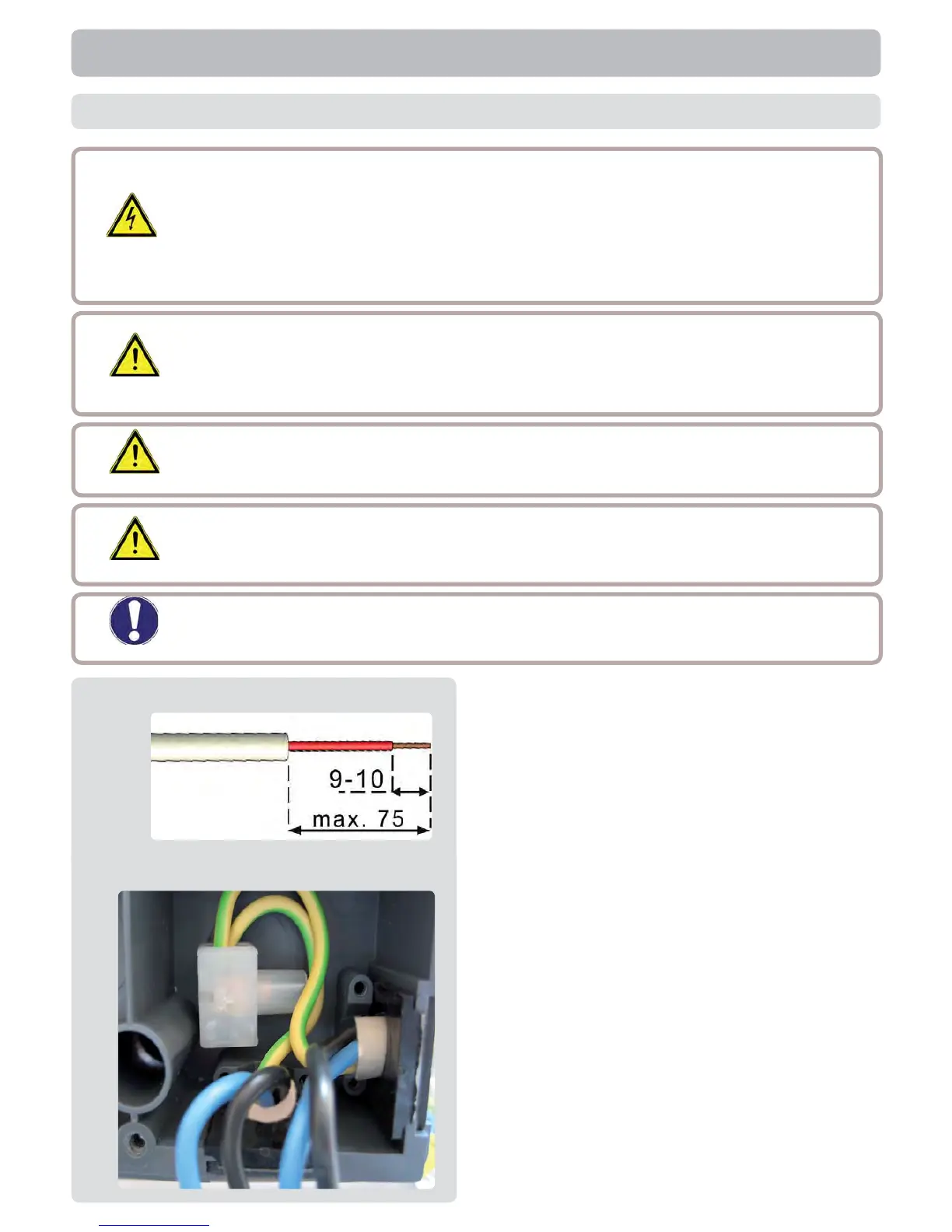 The cables being connected to the unit must not be stripped by more
