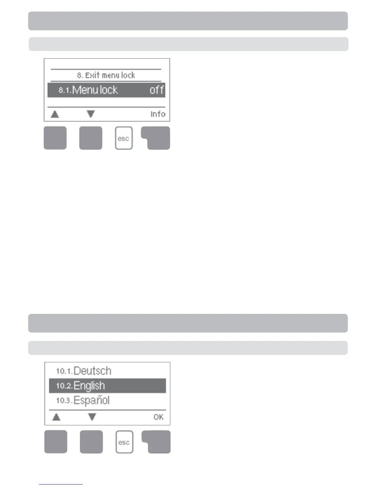 Menu “8. Menu lock” can be used to secure