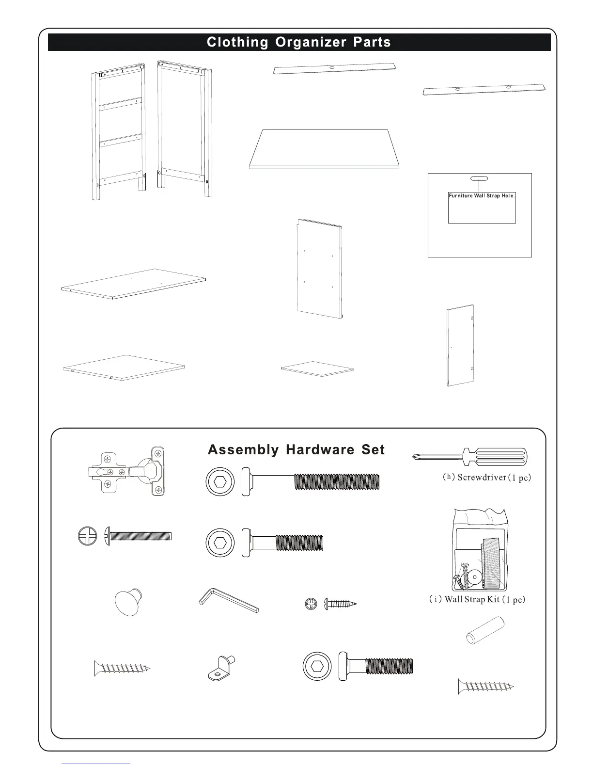 (j) Hinges Screw (8 pcs) (k) Shelf Support (4 pcs)