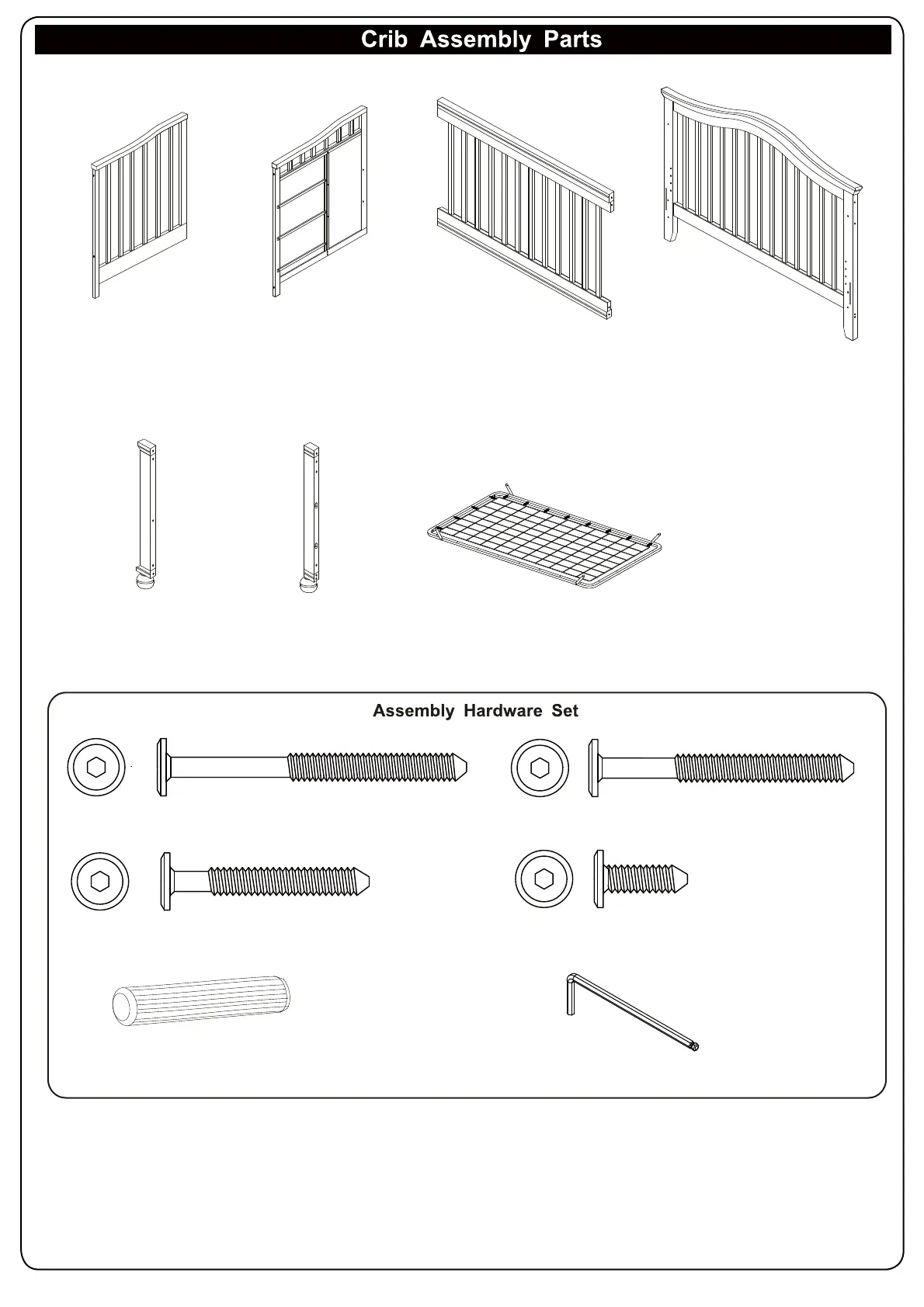 (B1) Center Crib End (1 pc) (C1) Front Side Rail (1 pc) (D1) Back Side Rail (1 pc)