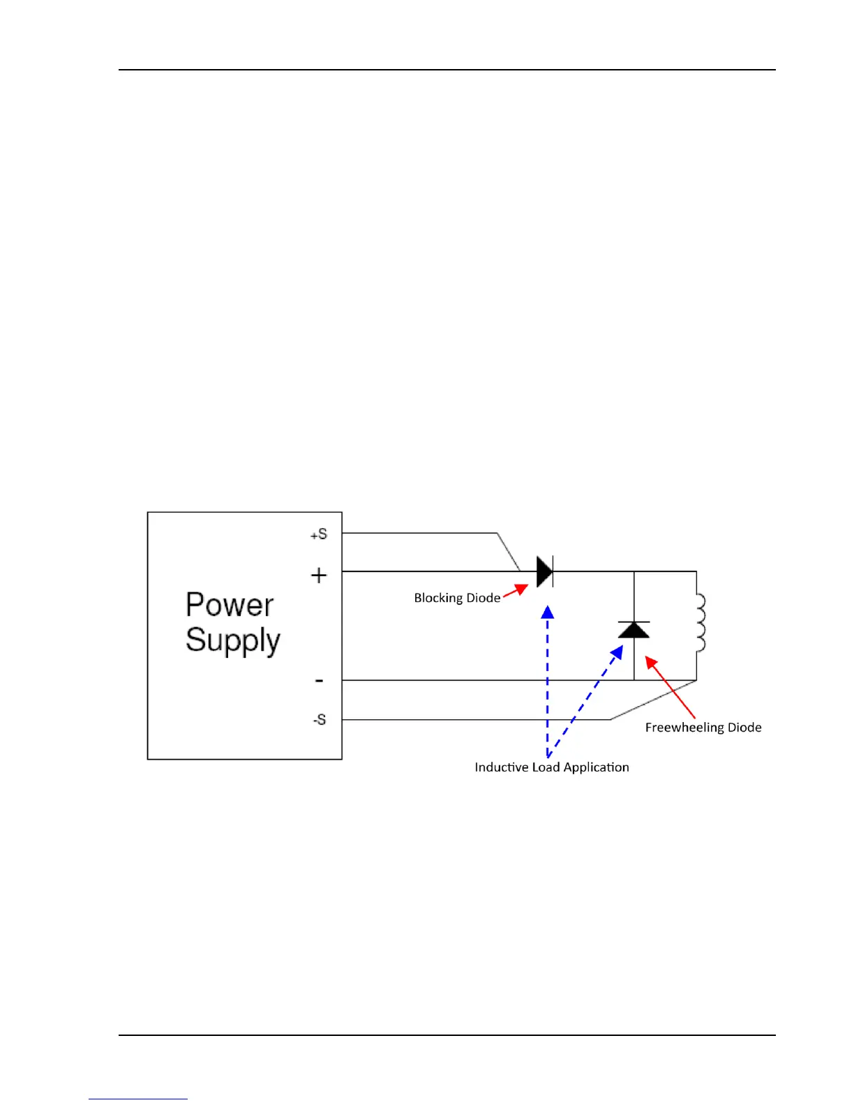 To prevent damage to the power supply from inductive kickback, connect a diode rated at