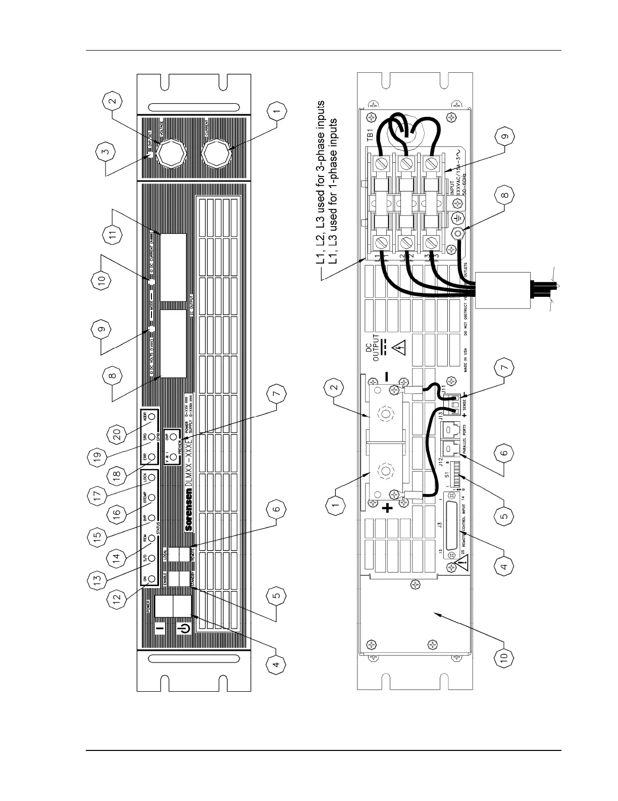 Sorensen DLM-E Series - Figure 2-2. DLM-E Controls, Connectors, and Indicators (5 V-80 V Models)