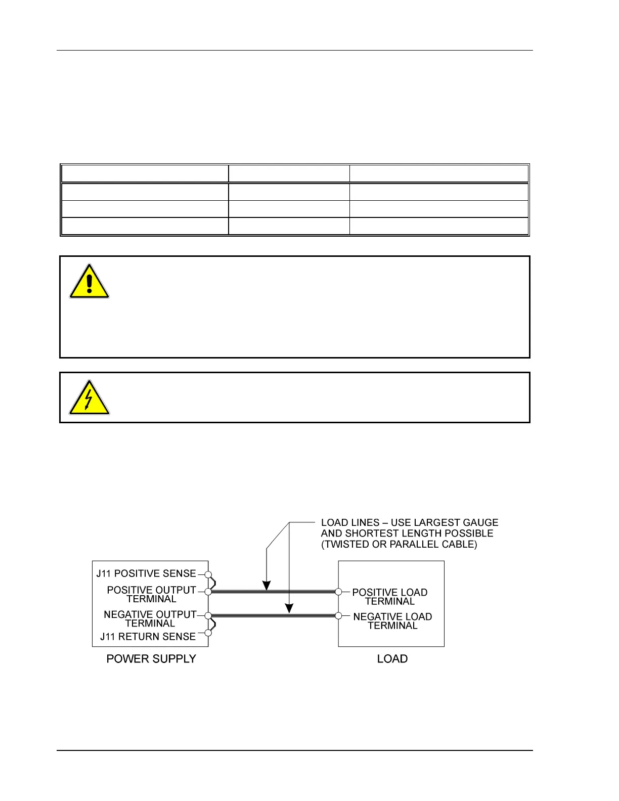 terminal and shorting the power supply output. Heavy connecting cables