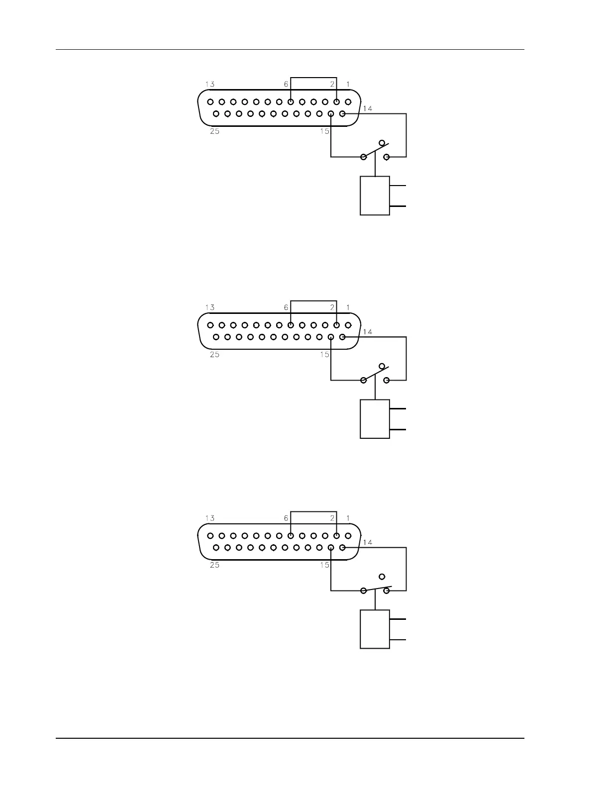 Sorensen DLM40-75E - Figure 4-13. Using Shutdown with Contact Closure of a Normally OPEN Relay (S1-6 Up); Figure 4-14. Using Shutdown with Contact Closure of a Normally OPEN Relay (S1-6 Down); Figure 4-15. Using Shutdown with Contact Closure of a Normally CLOSED Relay (S1-6 Up)
