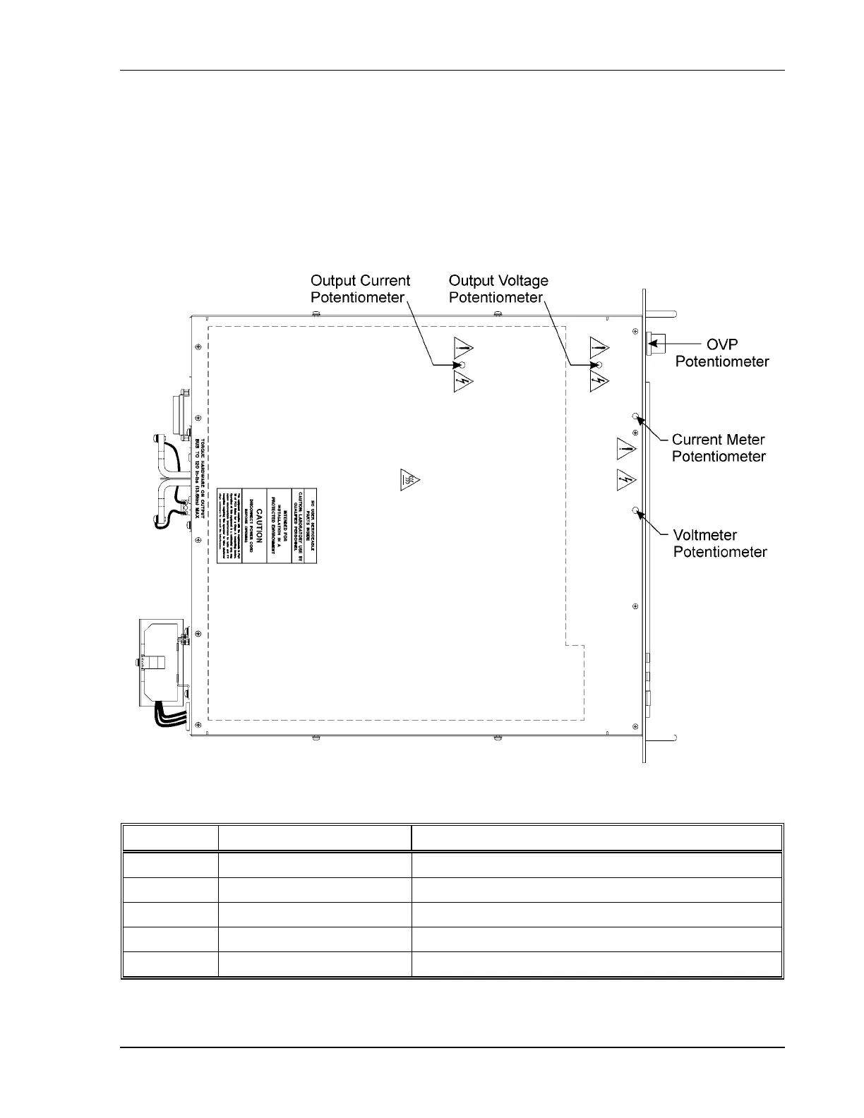 Calibration of the output voltage, current, or OVP is accomplished using multiturn trimpots.