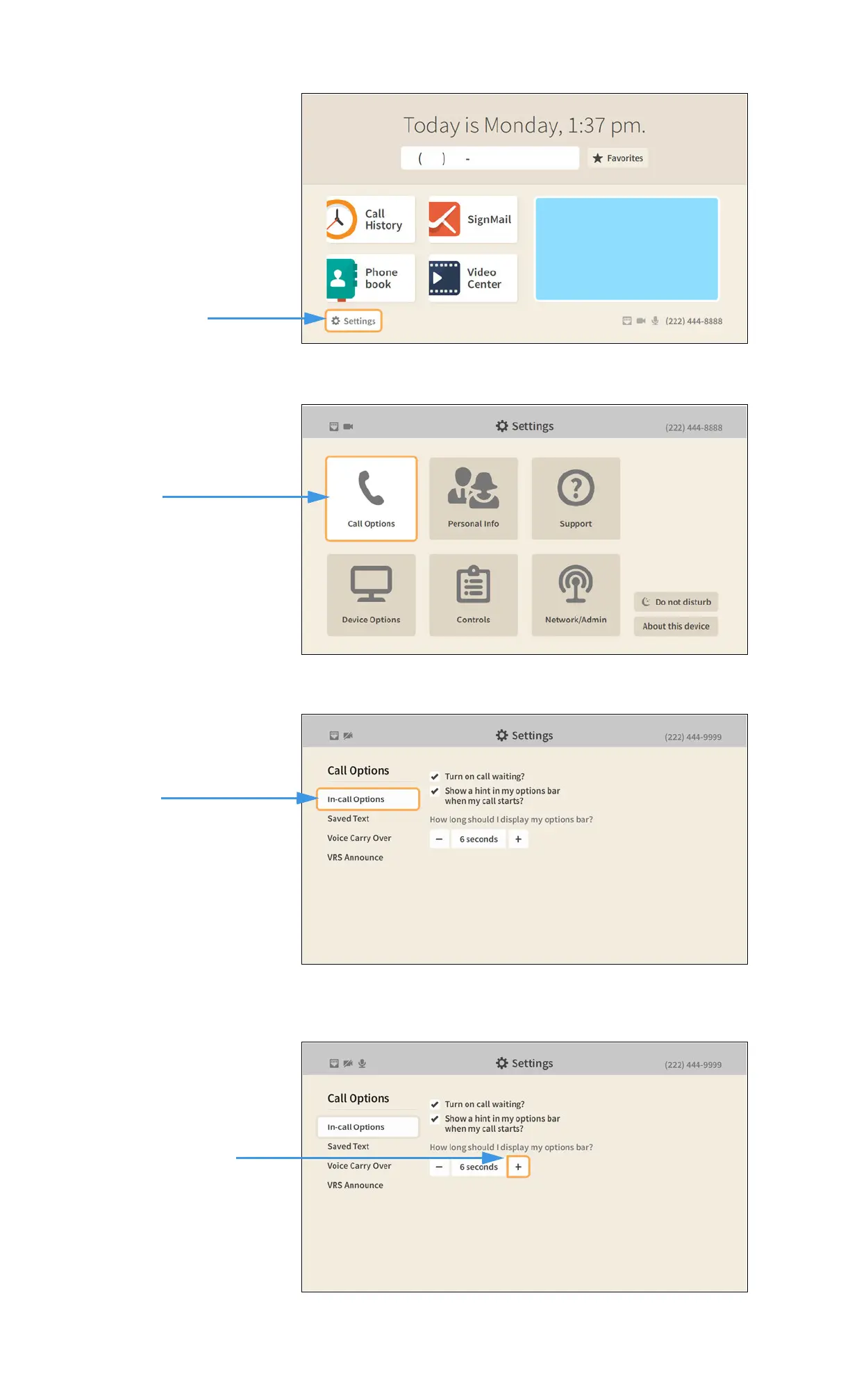 Step 4. Move to and select the + control under How long should I display my options bar?