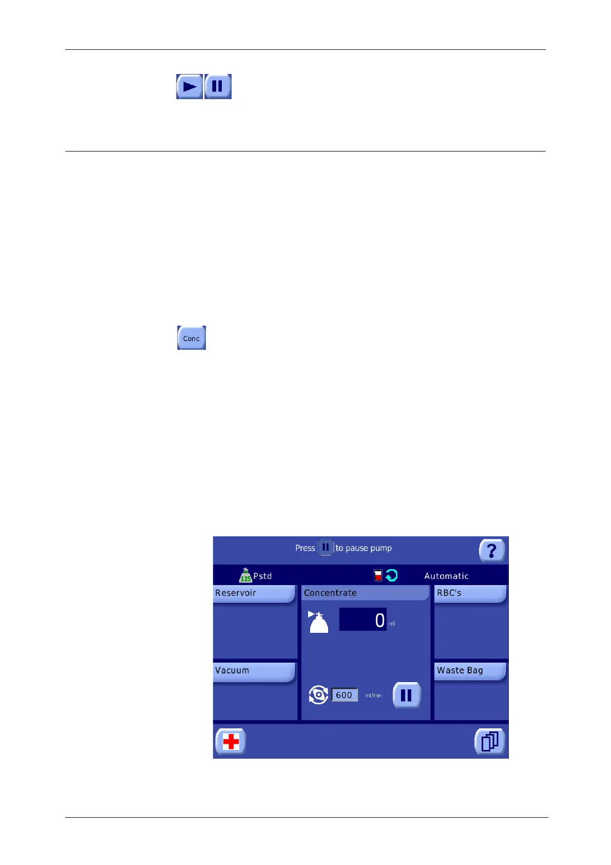 from the RBC collection bag into the centrifuge bowl, and the Concentrate Screen is displayed (see