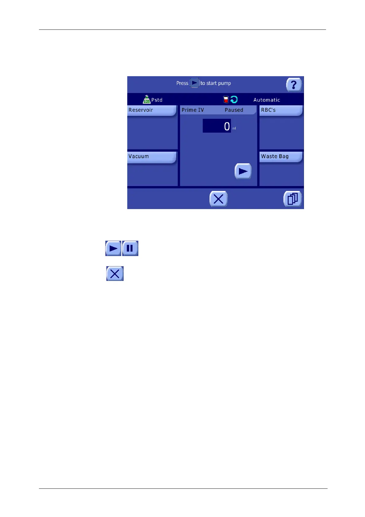 The Prime IV Screen is initially paused. The operator must touch the Play button to