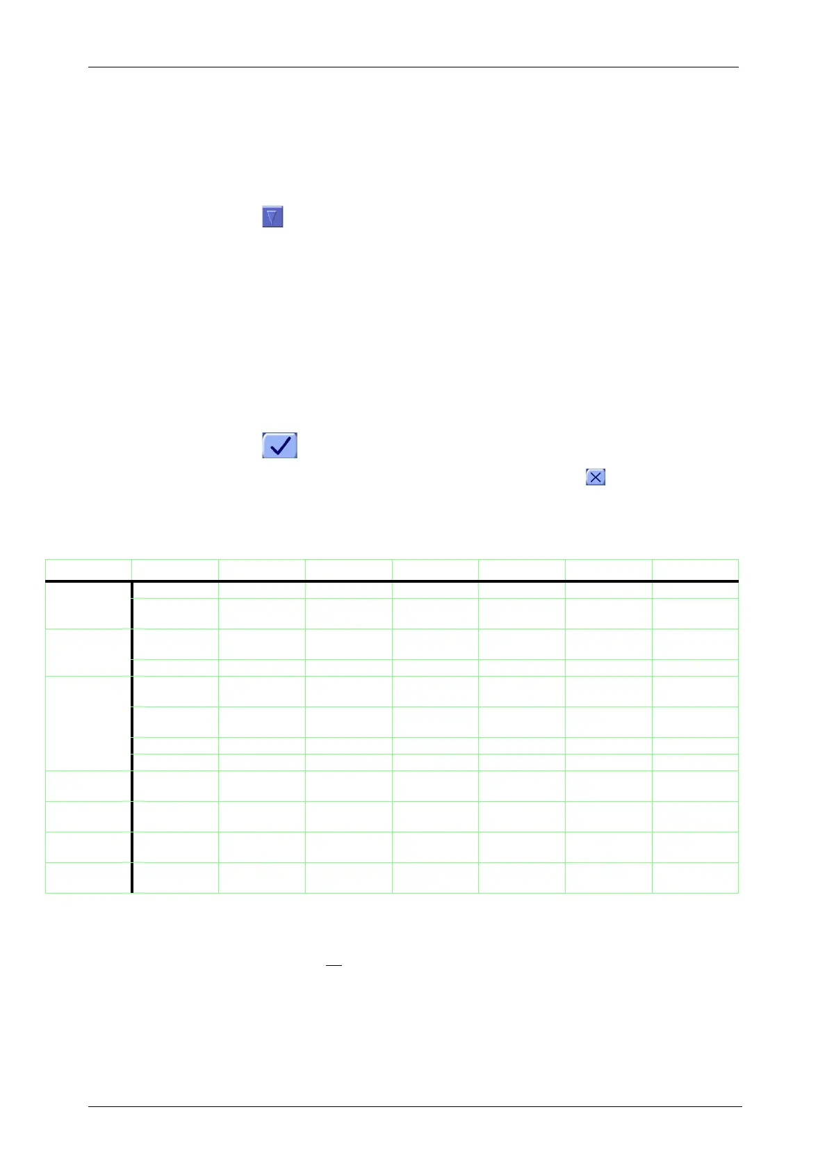 The number and type of modifiable parameters depends on the selected protocol. Below is a table