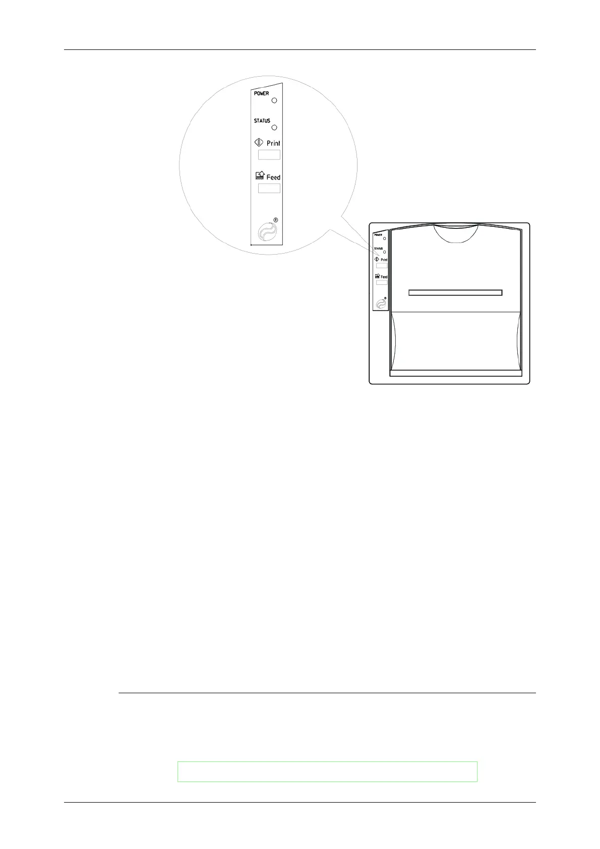 • a control panel comprising the PRINT and FEED buttons, and the POWER and STATUS LEDs,
