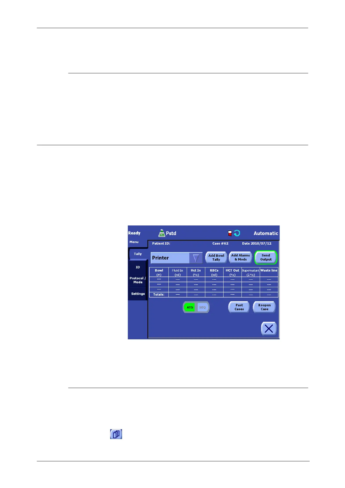 In addition to the standard data stored for each case, such as the volumes of collected RBC, PPP, and/